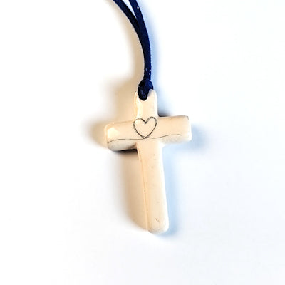 Cruz feita à mão com desenho de coração - CR-023